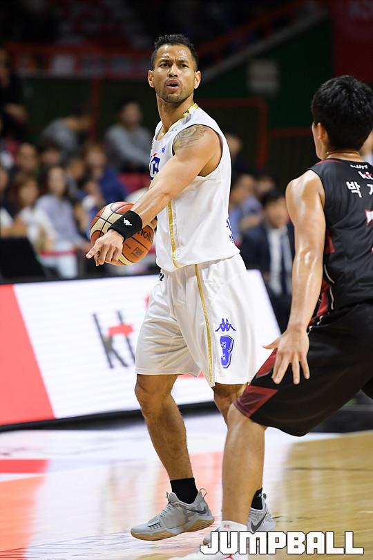 [점프볼=부산/유용우 기자] 22일 부산 사직체육관에서 열린 '2017-2018 정관장 프로농구' 부산 kt와 전주 KCC의 경기, KCC 전태풍이 경기를 조율하고 있다.