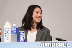 [점프볼=더케이호텔/유용우 기자] 23일 양재동에 위치한 더케이호텔 그랜드볼룸B에서 '신한은행 2017-2018 여자프로농구'미디어데이가 열렸다. 6개 구단 감독들이 선수들과 함께 미디어데이에 참가 하있다. 삼성생명 배혜윤이 출사표를 던지고 있다.