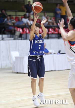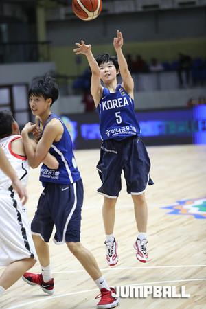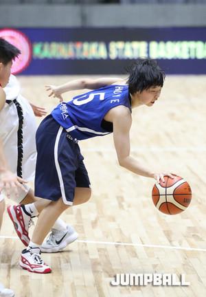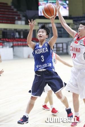 26일 인도 방갈로루에서 열린 2017 FIBA U16 아시아여자농구 대회 8강전 중국과의 경기, 한국 대표팀의 허예은이 과감한 돌파 공격으로 중국의 장신 숲을 뚫고 있다.