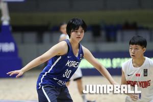 27일 인도 방갈로루에서 열린 2017 FIBA U16 아시아여자농구대회 5-8위전 한국과 홍콩의 경기, 한국 대표팀 박성은이 수비를 앞에 두고 중거리슛으로 득점을 만들어 내고 있다.