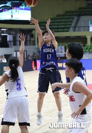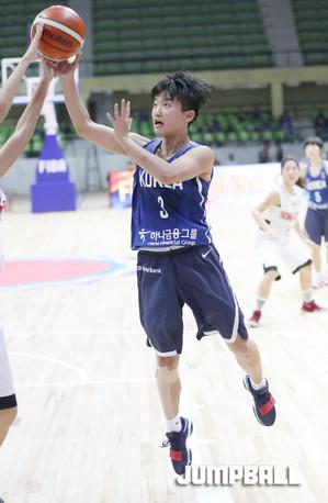 28일 인도 방갈로루에서 열린 2017 FIBA U16아시아여자농구대회 마지막 날 한국과 대만의 5-6위 결정전, 한국 IU16여자농구 대표팀의 정예림이 경기 초반 부터 적극적으로 공격에 임하고 있다.