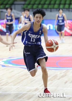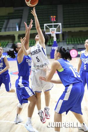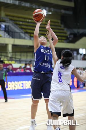 28일 인도 방갈로루에서 열린 2017 FIBA U16아시아여자농구대회 마지막 날 한국과 대만의 5-6위 결정전, 한국 IU16여자농구 대표팀에 정예림이 상대 수비에도 아랑곳 하지 않고 공격에 임하고 있다.