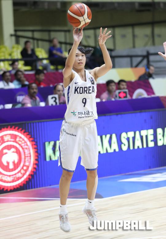 28일 인도 방갈로루에서 열린 2017 FIBA U16아시아여자농구대회 마지막 날 한국과 대만의 5-6위 결정전, 한국 IU16여자농구 대표팀 이다연이 패스를 시도하려다 직접 공격에 나섰다.