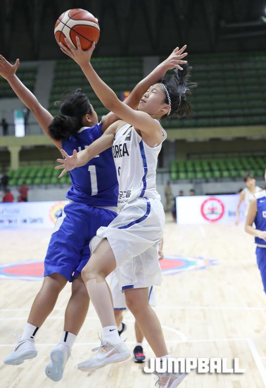 28일 인도 방갈로루에서 열린 2017 FIBA U16아시아여자농구대회 마지막 날 한국과 대만의 5-6위 결정전, 한국 IU16여자농구 대표팀 허예은이 빠르게 상대 골밑을 파고 들어 득점을 만들었다.