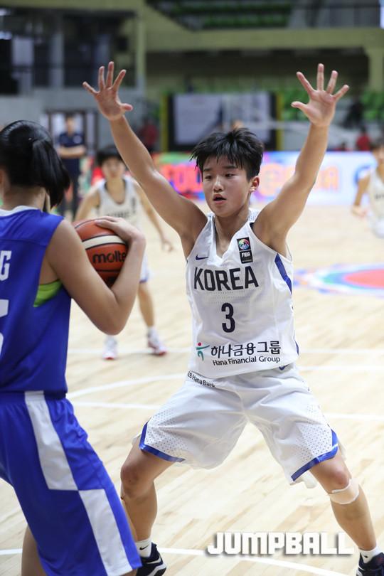 28일 인도 방갈로루에서 열린 2017 FIBA U16아시아여자농구대회 마지막 날 한국과 대만의 5-6위 결정전, 한국 IU16여자농구 대표팀 나금비가 상대 코트 엔드라인 부터 적극적으로 수비에 나섰다.