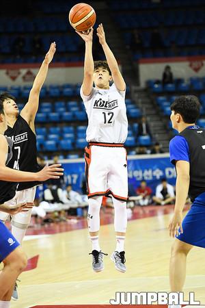 [점프볼=잠실/유용우 기자] 30일 잠실 학생체육관에서 오후 신인선수 드래프트에 앞서 '2017 KBL 국내신인선수 트라이아웃'이 열렸다. 중앙대 김우재 골밑 공격을 득점으로 연결하고 있다.
