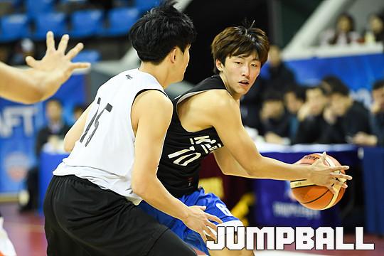 [점프볼=잠실/유용우 기자] 30일 잠실 학생체육관에서 오후 신인선수 드래프트에 앞서 '2017 KBL 국내신인선수 트라이아웃'이 열렸다. 우석대 최규선이 패스를 시도하고 있다.