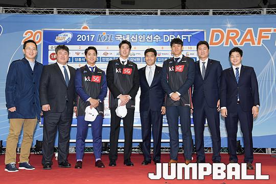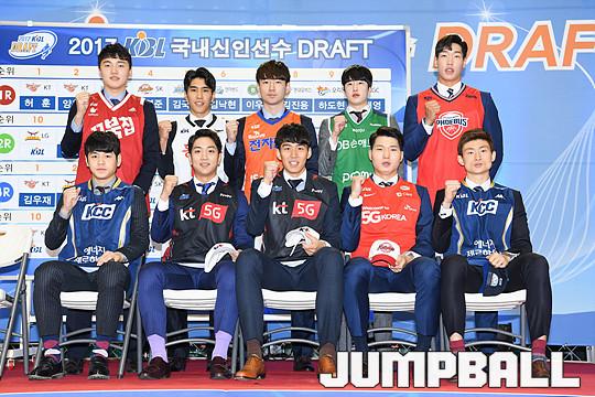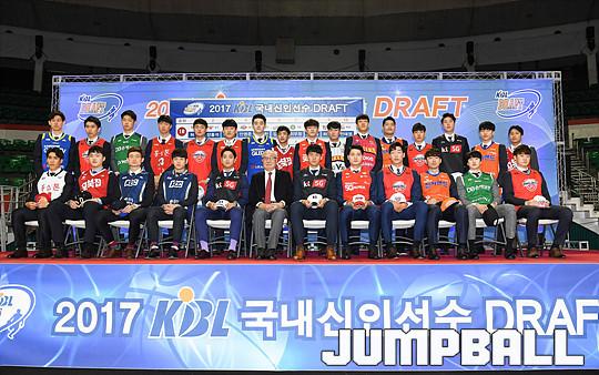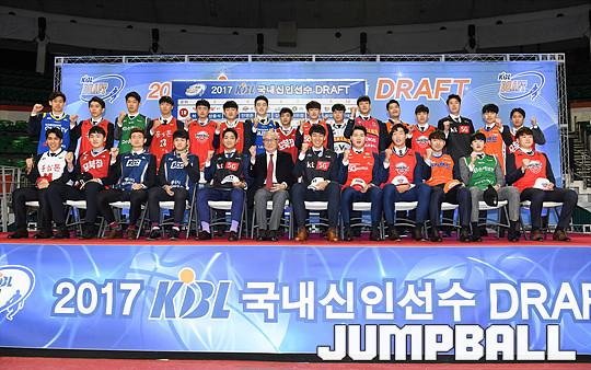 [점프볼=잠실/유용우 기자] 30일 잠실 학생체육관에서 '2017 KBL 국내신인선수 드래프트' 가 열렸다. 2011 드래프트와 같이 역대 KBL 역사상 가장 많은 총 44명의 선수가 참가한 이번 드래프트는 27명이 지명되며 61,4%의 지명률을 기록했다.'2017 KBL 국내신인선수 드래프트' 단체사진 화보
