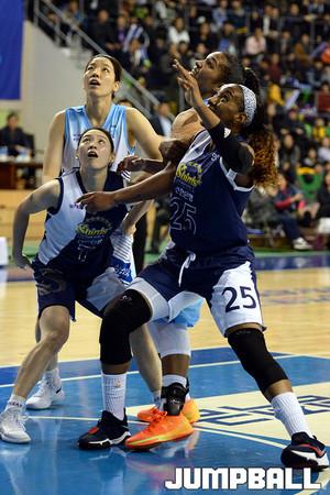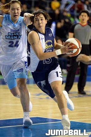 02일 용인 실내체육관에서 열린 '2017-2018 신한은행 여자프로농구' 용인 삼성생명 과 인천 신한은행과 의 경기, 삼성생명 김한별이 신한은행 김단비를 수비하고있다.