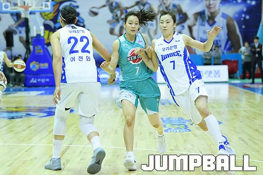 [점프볼=아산/유용우 기자] 13일 아산 이순신체육관에서 열린 '2017-2018 신한은행 여자프로농구' 아산 우리은행과 부천 KEB 하나은행의 경기, 우리은행 박혜진과 KEB 신지현이 볼없는 상태에서 매치업을 벌이고 있다.