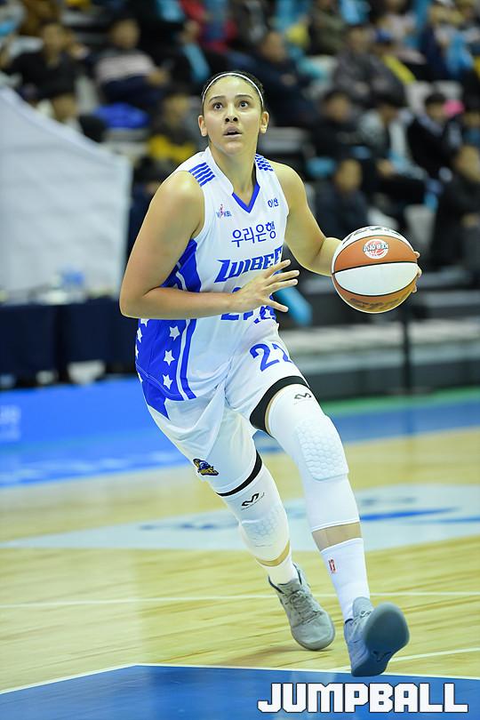 [점프볼=아산/유용우 기자] 13일 아산 이순신체육관에서 열린 '2017-2018 신한은행 여자프로농구' 아산 우리은행과 부천 KEB 하나은행의 경기, 우리은행 어천와가 공격을 준비하고 있다.
