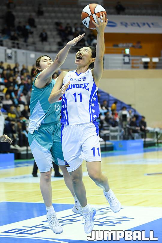 [점프볼=아산/유용우 기자] 13일 아산 이순신체육관에서 열린 '2017-2018 신한은행 여자프로농구' 아산 우리은행과 부천 KEB 하나은행의 경기, 우리은행 임영희가 돌파하며 슛을 시도하고 있다.