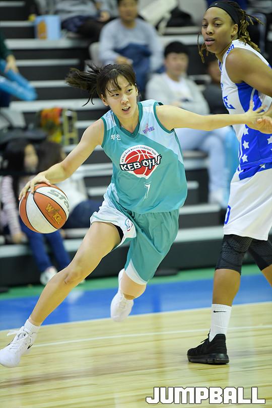 [점프볼=아산/유용우 기자] 13일 아산 이순신체육관에서 열린 '2017-2018 신한은행 여자프로농구' 아산 우리은행과 부천 KEB 하나은행의 경기, KEB 신지현이 돌파를 하고 있다.