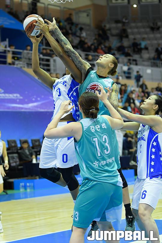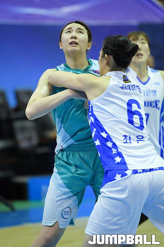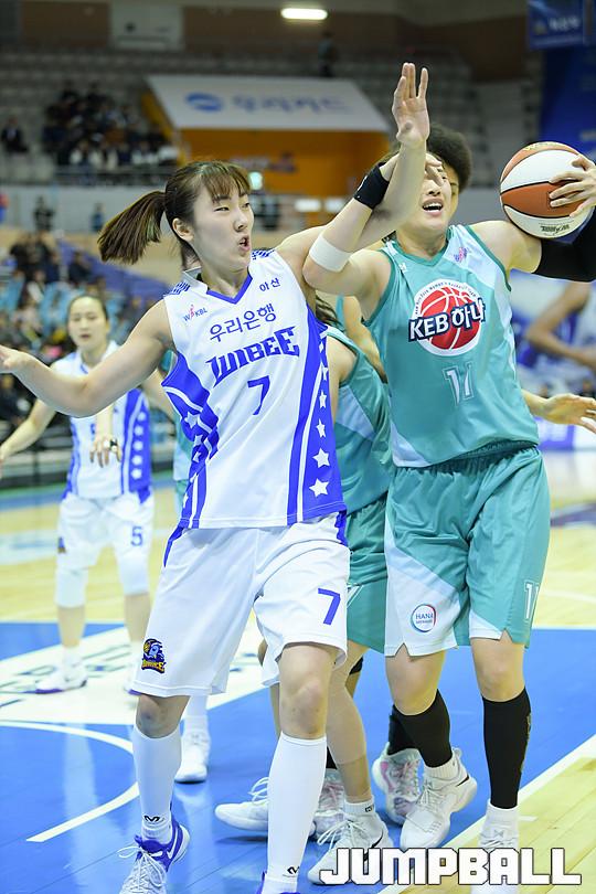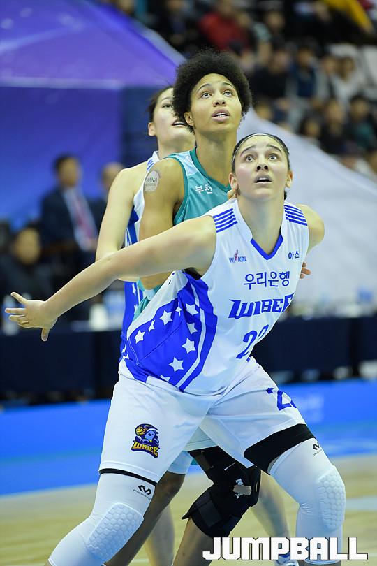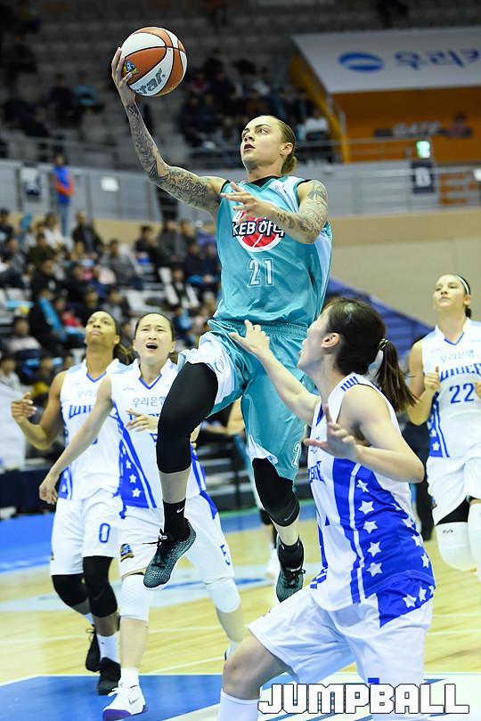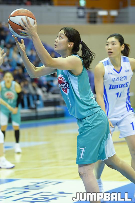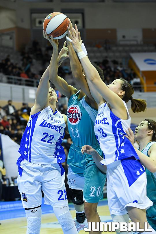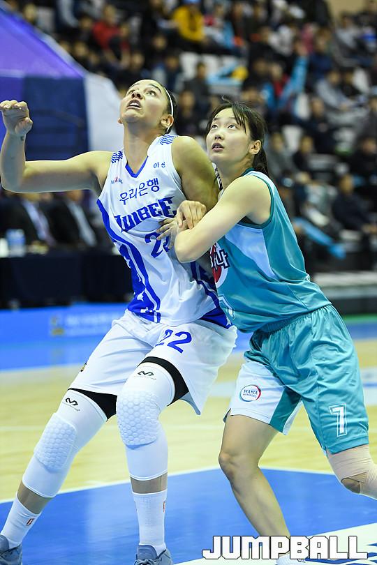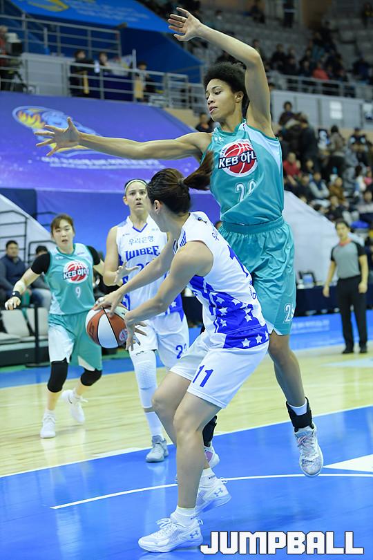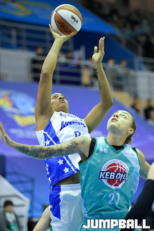 [점프볼=아산/유용우 기자] 13일 아산 이순신체육관에서 열린 '2017-2018 신한은행 여자프로농구' 아산 우리은행과 부천 KEB 하나은행의 경기, 우리은행이 74-69로 KEB 하나은행에 역전승을 거두었다. 아산 우리은행과 부천 KEB 하나은행의 경기화보