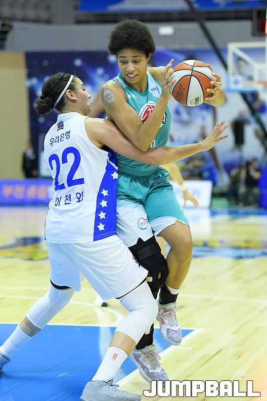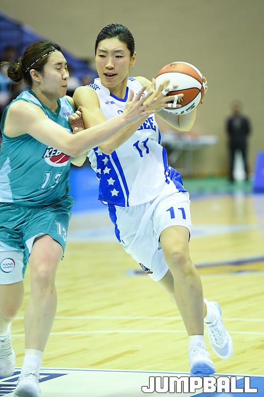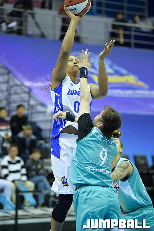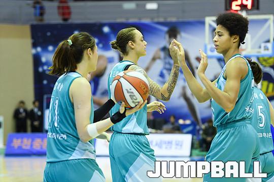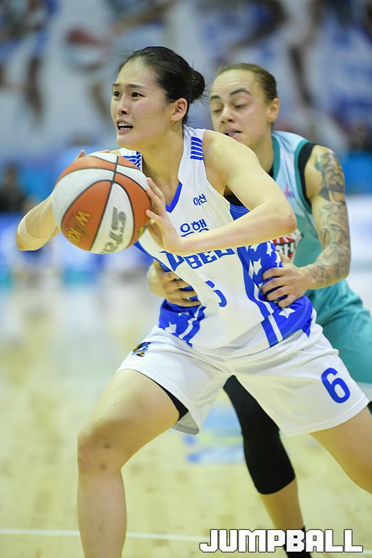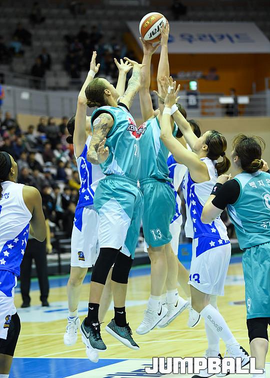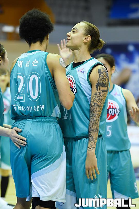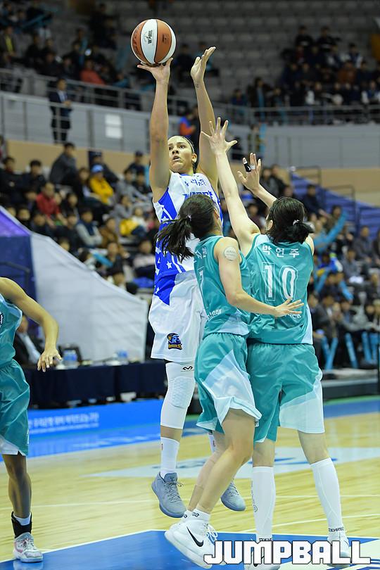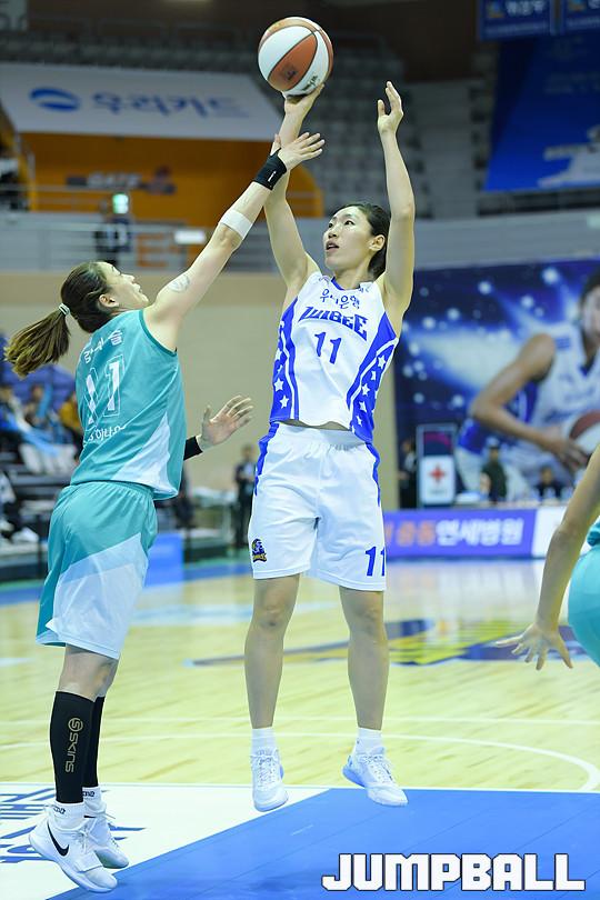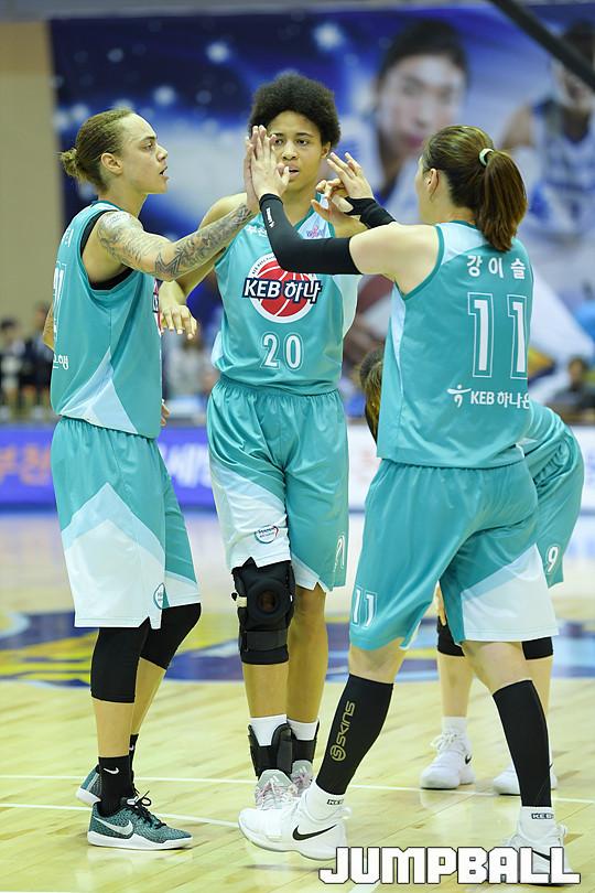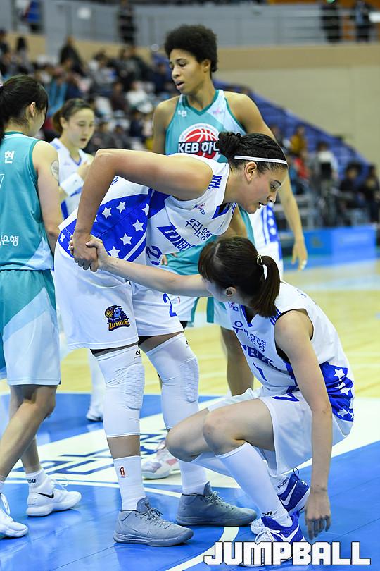 [점프볼=아산/유용우 기자] 13일 아산 이순신체육관에서 열린 '2017-2018 신한은행 여자프로농구' 아산 우리은행과 부천 KEB 하나은행의 경기, 우리은행이 74-69로 KEB 하나은행에 역전승을 거두었다. 아산 우리은행과 부천 KEB 하나은행의 경기화보
