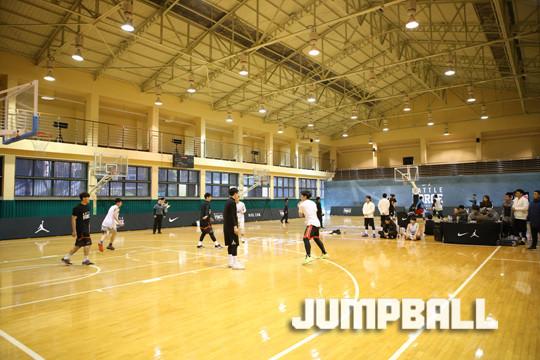 19일 서울 경복고 체육관에 마련된 나이키 배틀 포스 서브 코트, 본격적인 경기에 앞서 선수들이 몸을 풀고 있다.
