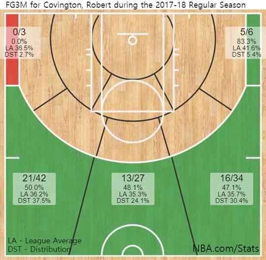 #2017-2018시즌 로버트 코빙턴 3점슛 성공률 분포도(*20일 기준)