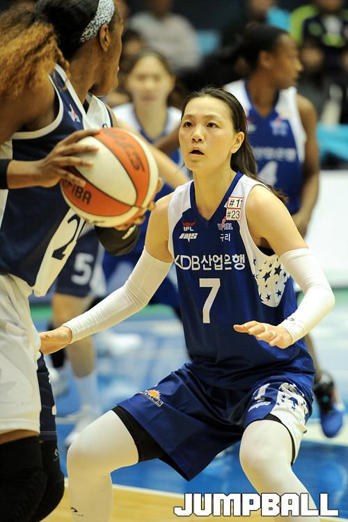 23일 구리시체육관에서 열린 '2017-2018 신한은행 여자프로농구' 구리 KDB생명과 인천 신한은행의 경기,KDB생명 한채진이 신한은행 쏜틀을 수비하고있다.