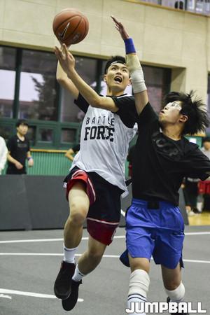 [점프볼=서울/홍기웅 기자] 25일 경복고등학교 체육관에서 열린 '2017 나이키 배틀 포스 바스켓볼 3-on-3' 고등부 썬더파이브와 모르겠다 경기. 썬더파이브 선수가 빈 공간을 침투해 레이업을 올리고 있다.