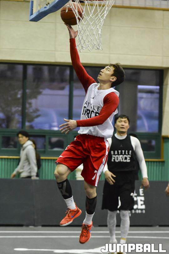[점프볼=서울/홍기웅 기자] 26일 경복고등학교 체육관에서 열린 '2017 나이키 배틀 포스 바스켓볼 3-on-3' 일반부 4강 LP와 펜타곤 경기. LP 선수가 레이업을 올리고 있다.