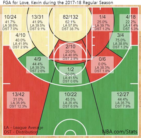 #2017-2018시즌 케빈 러브 정규리그 필드골 성공률(*10일 기준)