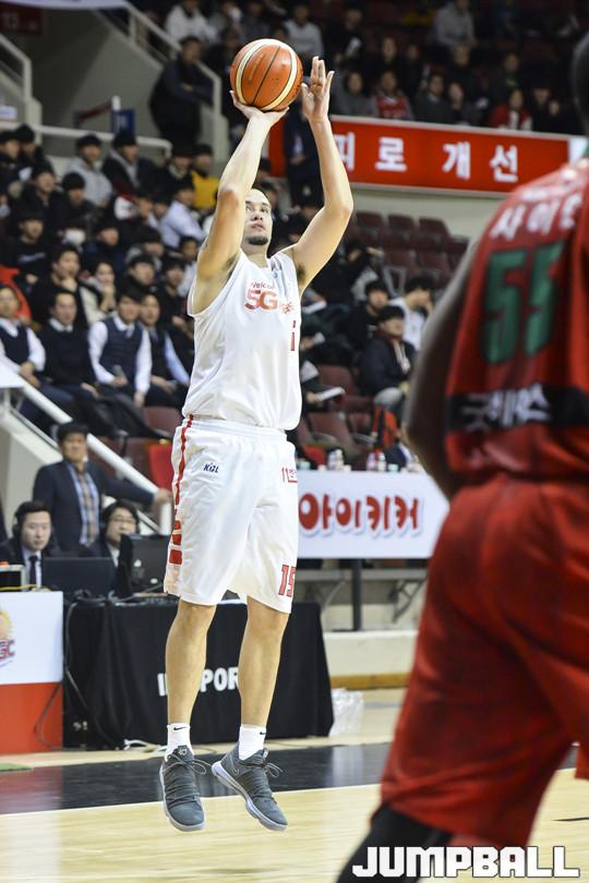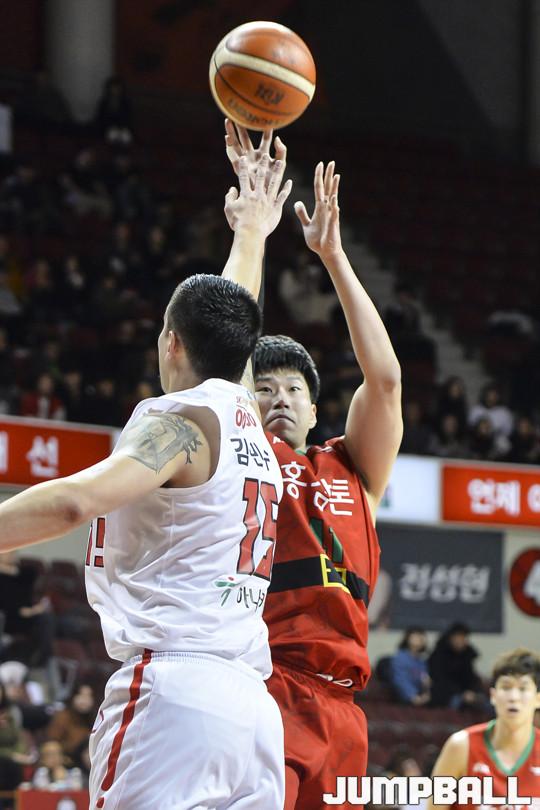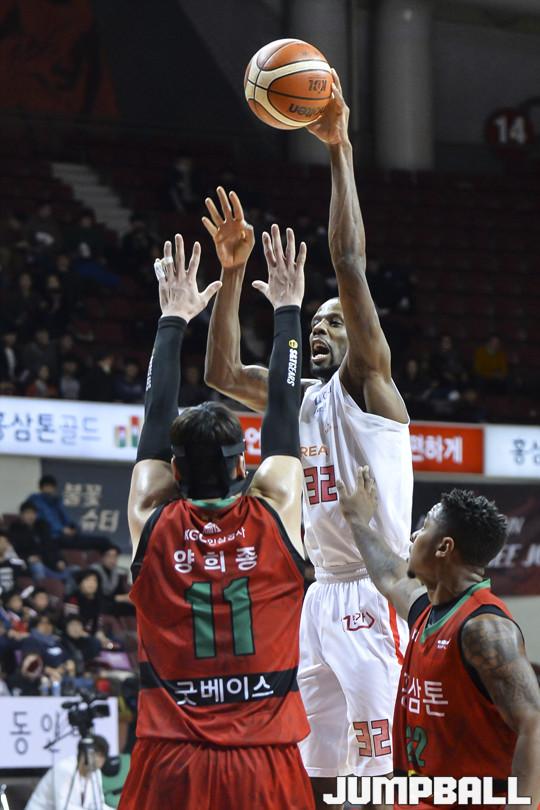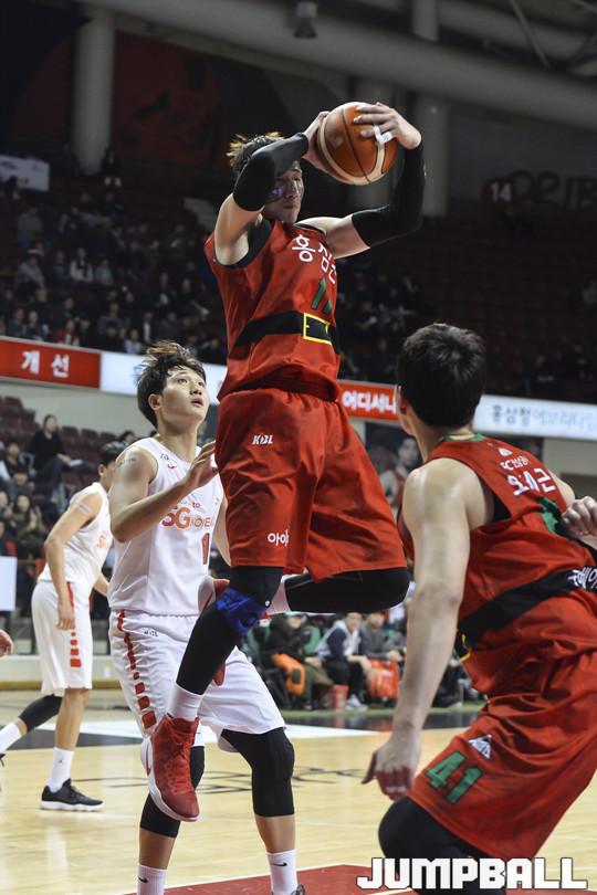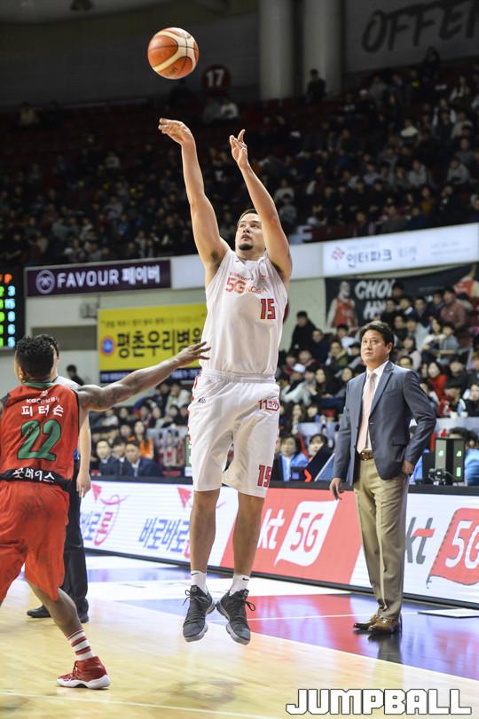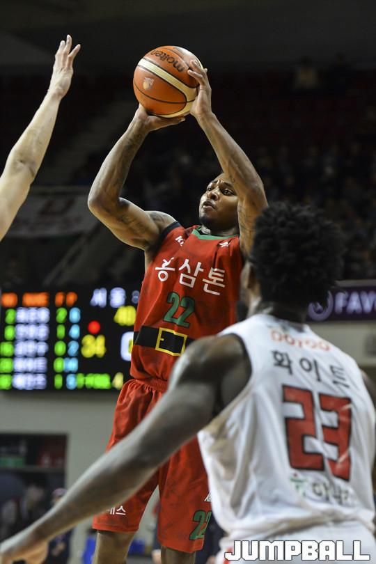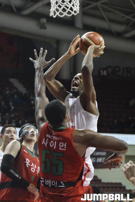 [점프볼=안양/홍기웅 기자] 19일 안양실내체육관에서 열린 '2017-2018 정관장 프로농구' 안양 KGC와 서울 SK의 경기에서 안양 KGC가 연속된 외곽 슛 득점으로 86-74로 승리를 거뒀다. 이번 승리로 6연승을 달성했다. 안양 KGC와 서울 SK의 경기화보.