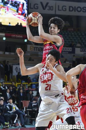 [점프볼=창원/홍기웅 기자] 20일 창원실내체육관에서 열린 '2017-2018 정관장 프로농구' 창원 LG와 고양 오리온의 경기. LG 선수들이 작전타임 이후 코트로 복귀하기전 화이팅을 하고 있다.