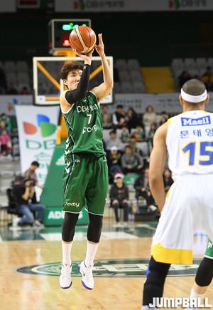 [점프볼=원주 문복주/기자] ] 21일 원주종합체육관에서 열린 '2017-2018 정관장 프로농구' 원주 DB와 서울 삼성의 경기. DB 두경민이 저돌적으로 상대 골밑을 돌파하고 있다.
