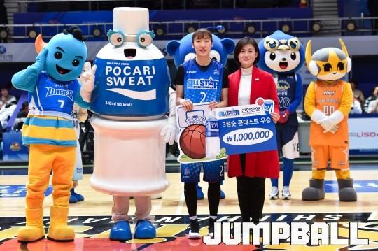[점프볼=인천/윤희곤 기자] 24일 인천도원체육관에서 열린 ‘신한은행 2017-2018 여자프로농구 올스타전’. 우리은행 박혜진이 포카리스웨트와 함께하는 올스타전 3점슛 컨테스트에 우승을 차지했다.
