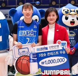 [점프볼=인천/윤희곤 기자] 24일 인천도원체육관에서 열린 ‘신한은행 2017-2018 여자프로농구 올스타전’. 우리은행 엄다영과 KBSN 염상엽 아나운서의 올스타전 특별공연이 진행되었다.
