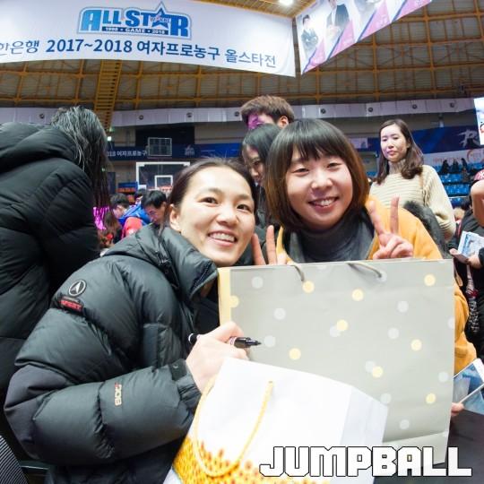 [점프볼=인천/윤희곤 기자] 24일 인천도원체육관에서 열린 ‘신한은행 2017-2018 여자프로농구 올스타전’. 올스타전 종료 후 경기장에 찾아온 관람객을 대상으로 팬 사인회가 진행되었다.