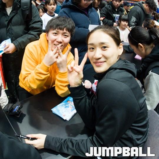 [점프볼=인천/윤희곤 기자] 24일 인천도원체육관에서 열린 ‘신한은행 2017-2018 여자프로농구 올스타전’. 올스타전 종료 후 경기장에 찾아온 관람객을 대상으로 팬 사인회가 진행되었다.