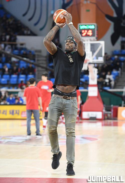 [점프볼=잠실학생/문복주 기자] 25일 잠실학생체육관에서 열린 '2017-2018 정관장 프로농구' 서울 SK와 서울 삼성의 경기전 삼성 라틀리프가 선수단 몸풀기에 슛을 던져보고 있다.