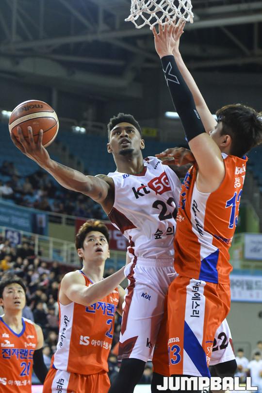 [점프볼=인천/홍기웅 기자] 25일 인천삼산체육관에서 열린 '2017-2018 정관장 프로농구' 인천 전자랜드와 부산 KT의 경기. KT 르브라이언 내쉬가 트래블링 후 레이업을 올리고 있다.