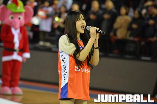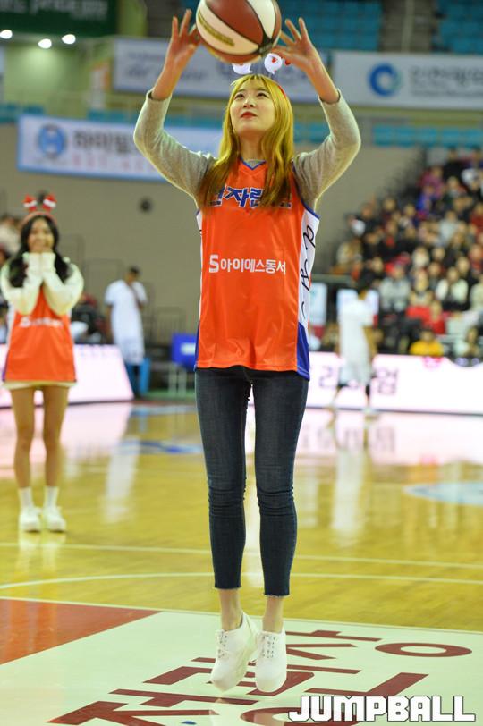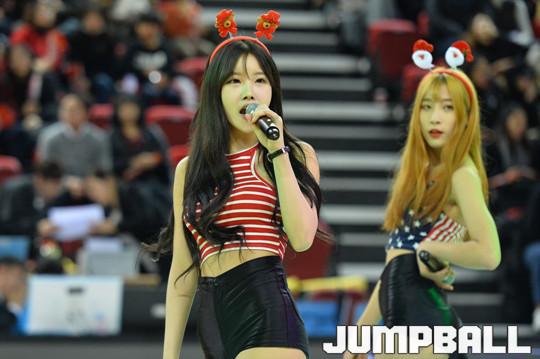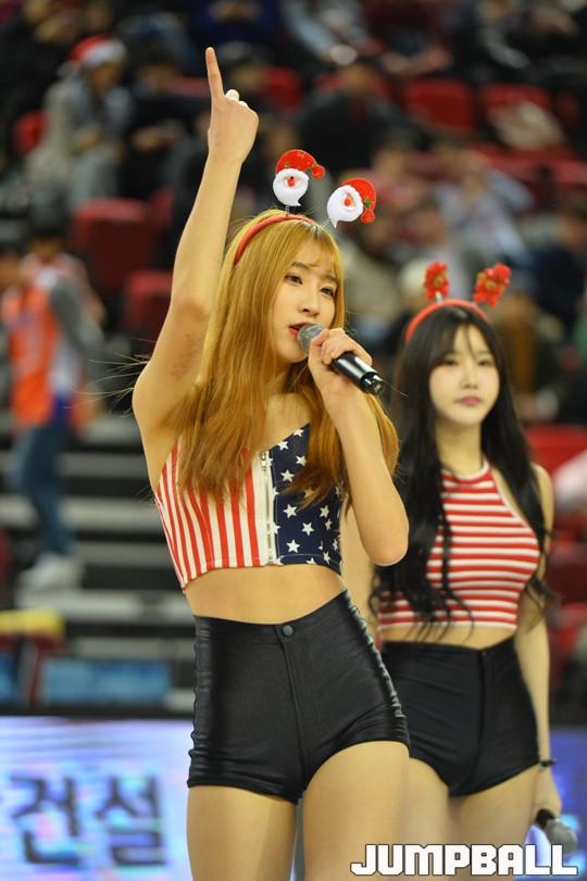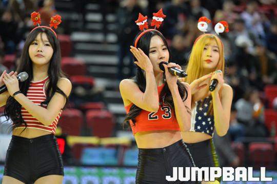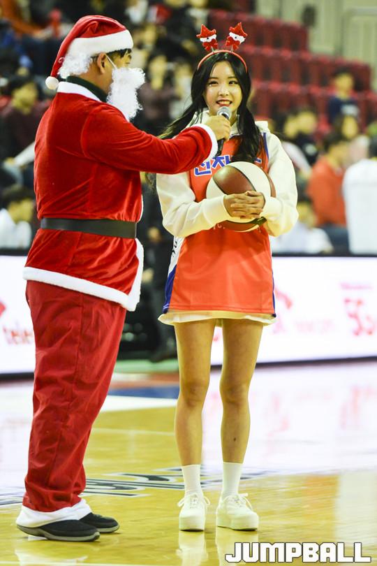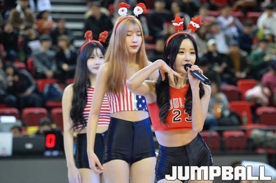 [점프볼=인천/홍기웅 기자] 25일 인천삼산체육관에서 열린 '2017-2018 정관장 프로농구' 인천 전자랜드와 부산 KT의 경기에서 아이돌 그룹 '포켓걸스'가 방문해 크리스마스 경기를 맞이했다. 포켓걸스는 경기 시작전 애국가 제창을 하고 시투 및 하프타임 공연과 추첨까지 팬들에게 포켓걸스를 알리고 소통하기 위해 노력했다.