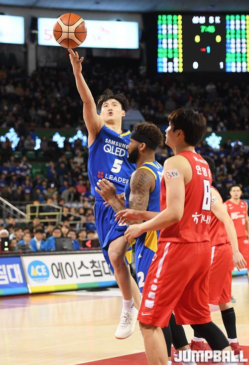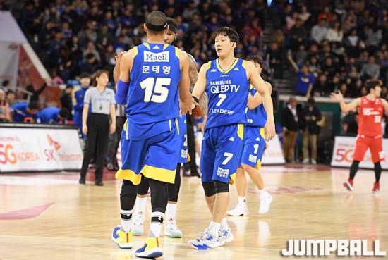 [점프볼=잠실학생/문복주 기자] 서울 삼성은 25일 잠실학생체육관에서 열린 2017-2018 정관장 프로농구 서울 SK와의 S-더비 및 크리스마스 매치에서 82-74로 승리했다. 13개의 3점슛을 성공한 삼성은 이번 시즌 팀내 최다 3점슛 기록을 세우며 기쁨을 두 배로 더했다.