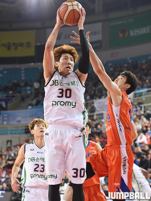 [점프볼=인천 문복주/기자] 30일 인천 삼산월드체육관에서 열린 '2017-2018 정관장 프로농구' 인천 전자랜드와 원주 DB의 경기, DB 두경민이 수비리바운드를 잡아내고 있다.