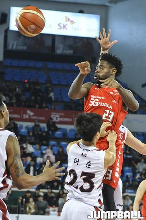 [점프볼=잠실/홍기웅 기자] 30일 잠실학생체육관에서 열린 '2017-2018 정관장 프로농구' 서울 SK와 부산 KT의 경기. SK 변기훈이 점프 슛을 던져 득점하고 있다.