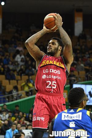 1일 잠실실내체육관에서 열린 '17-18 정관장 프로농구 서울 삼성 과 창원 LG 의 경기에서 칼 홀 이 리바운드를 따내고 있다.