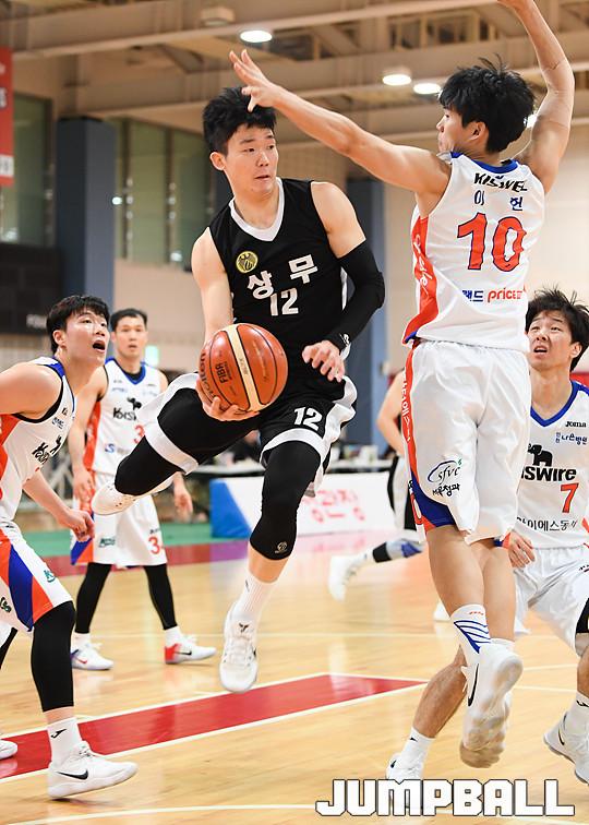 [점프볼=고양/유용우 기자] 02일 고양 실내체육관에서 열린 '2017-2018 KBL D리그' 인천 전자랜드와 신협 상무의 D리그 1차 결승 경기, 상무 김현수가 패스를 내주고 있다.