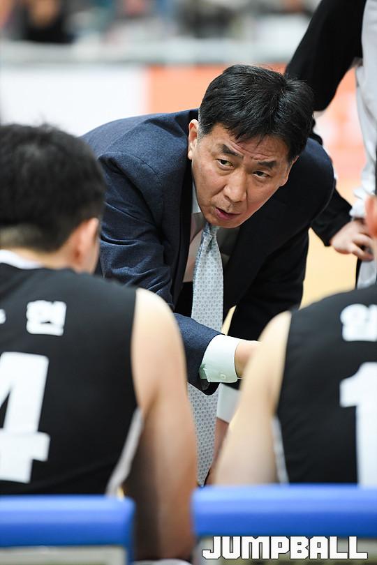 [점프볼=고양/유용우 기자] 02일 고양 실내체육관에서 열린 '2017-2018 KBL D리그' 인천 전자랜드와 신협 상무의 D리그 1차 결승 경기, 상무 이훈재 감독이 작전을 지시하고 있다.