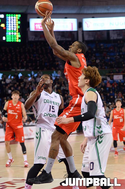 05일 잠실 학생체육관에서 열린 '2017-2018 정관장 프로농구' 서울 SK 와 원주 DB 의 경기, DB 가 91-85로 승리하였다. 오늘 승리로 3연승을 달리며 선두를 유지하였다.