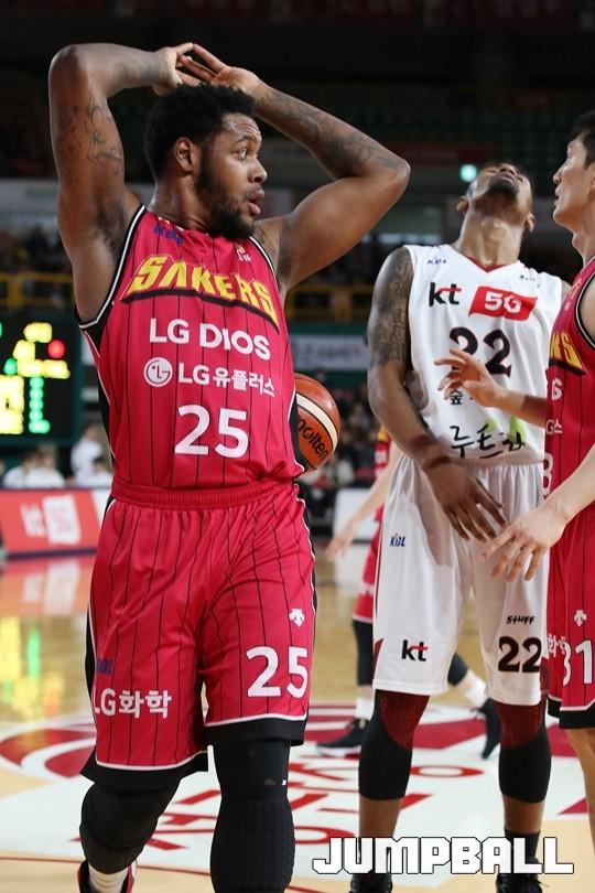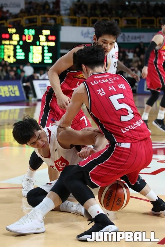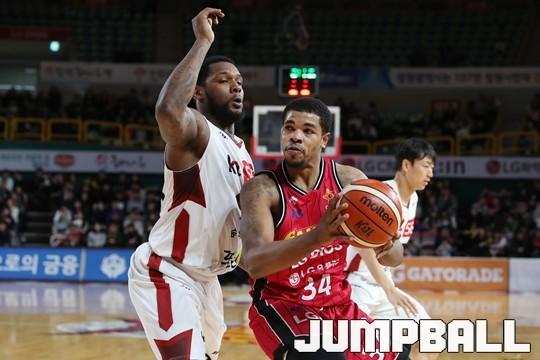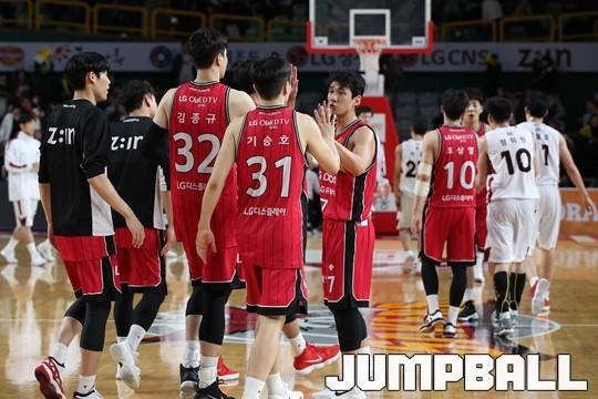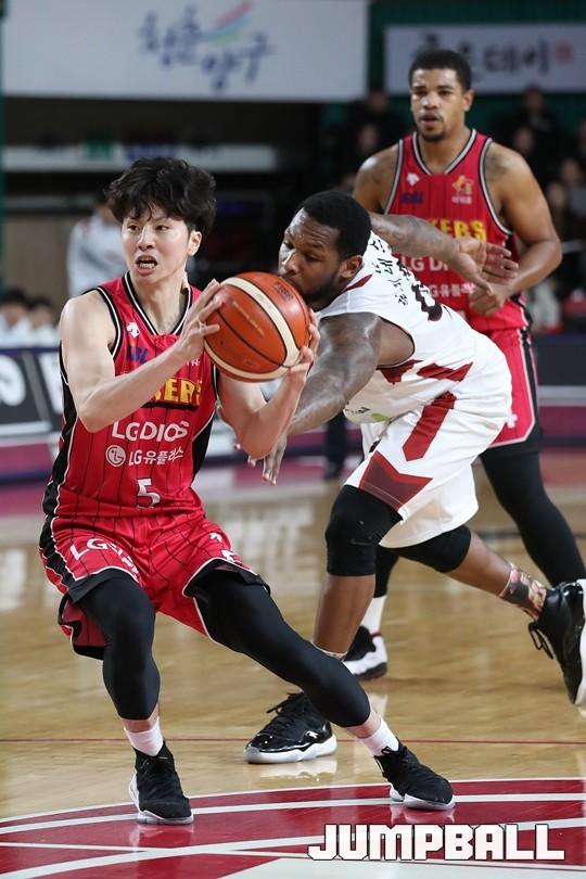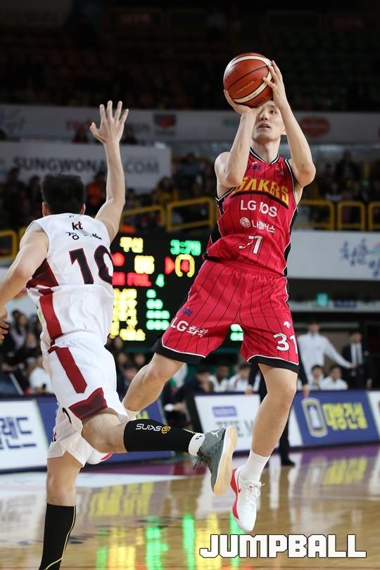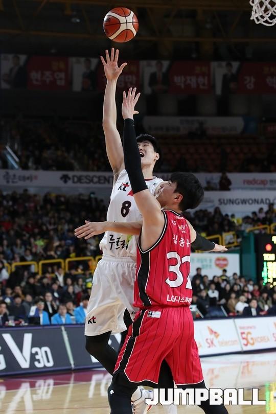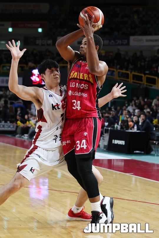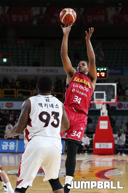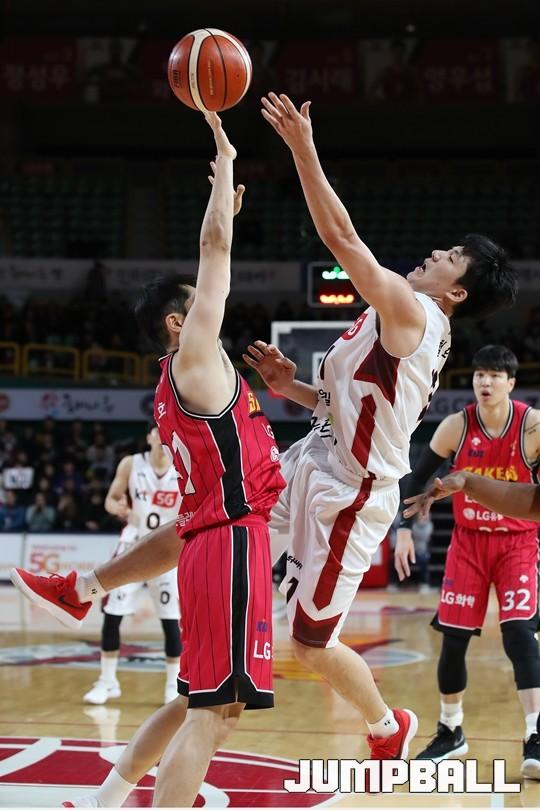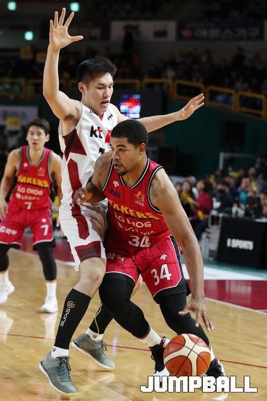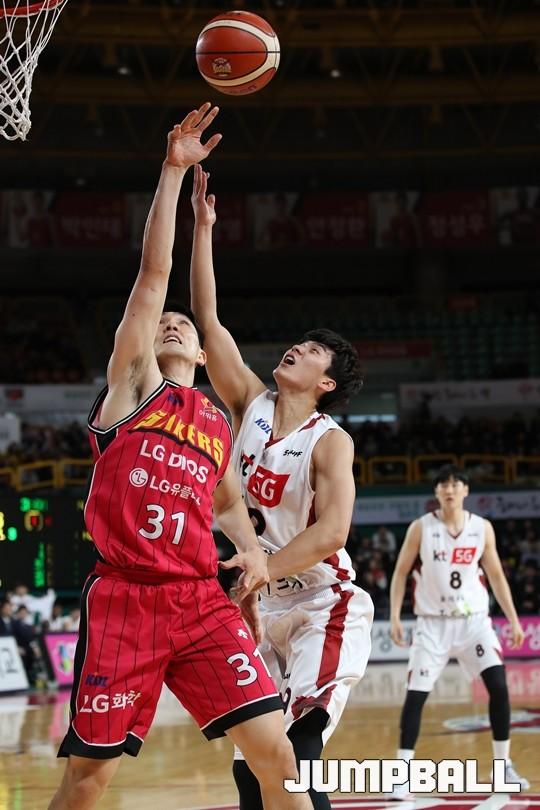 [점프볼=창원/김병문 기자] 6일 창원실내체육관에서 열린 정관장프로농구 KBL2017-2018 시즌 창원 LG와 부산 KT의 경기에서 LG가 KT를 82:70으로 승리했다.