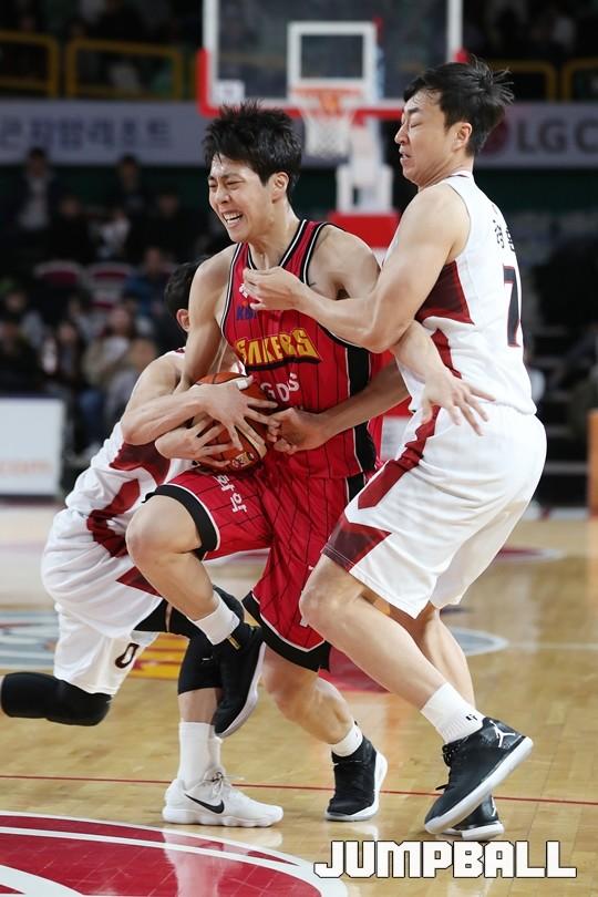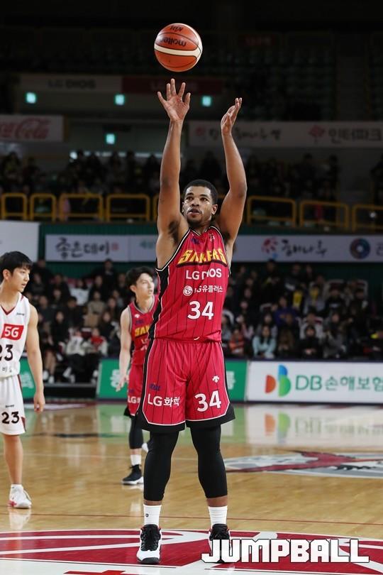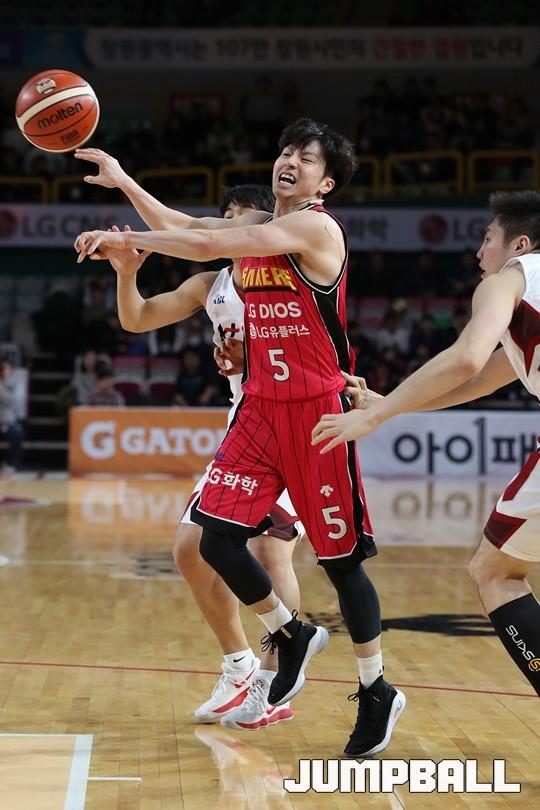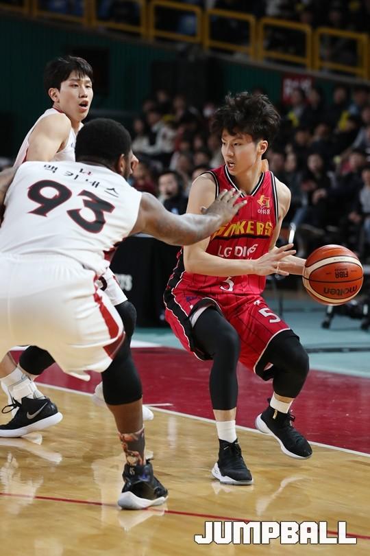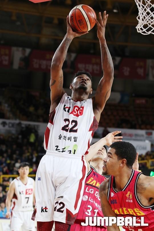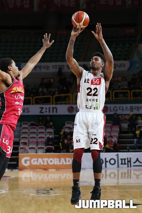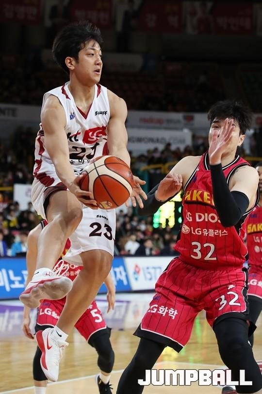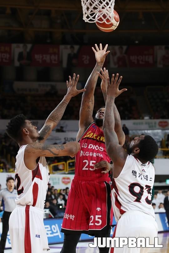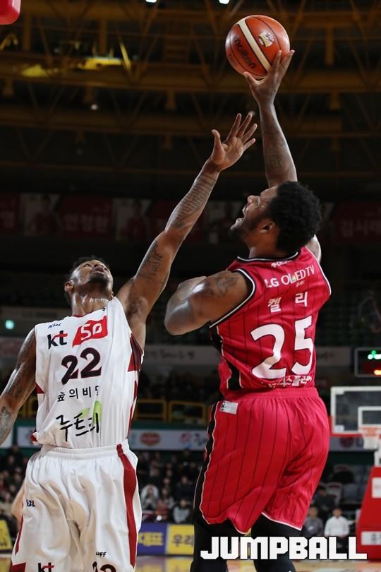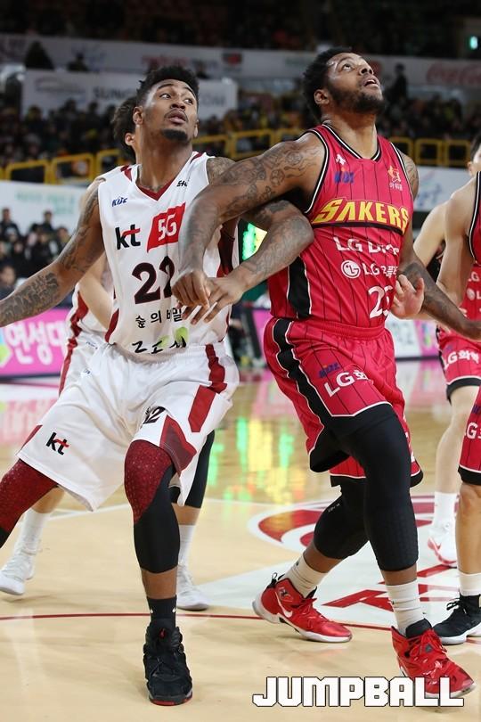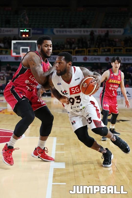 [점프볼=창원/김병문 기자] 6일 창원실내체육관에서 열린 정관장프로농구 KBL2017-2018 시즌 창원 LG와 부산 KT의 경기에서 LG가 KT를 82:70으로 승리했다.