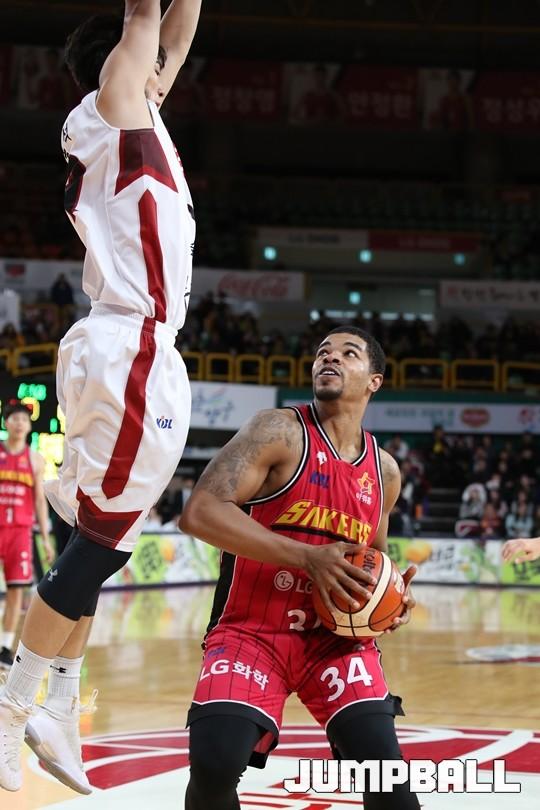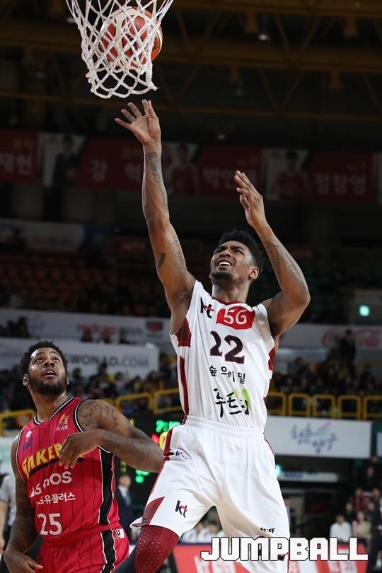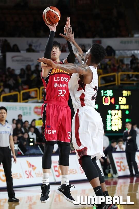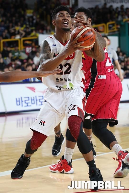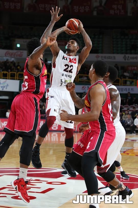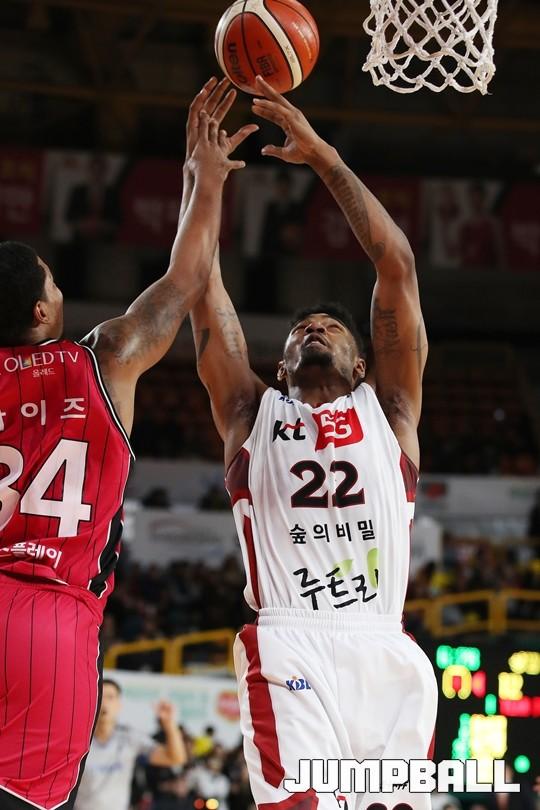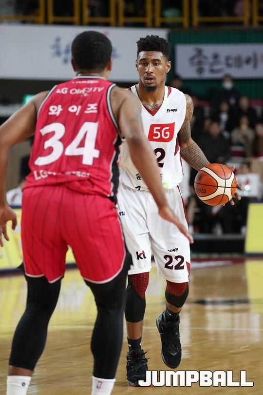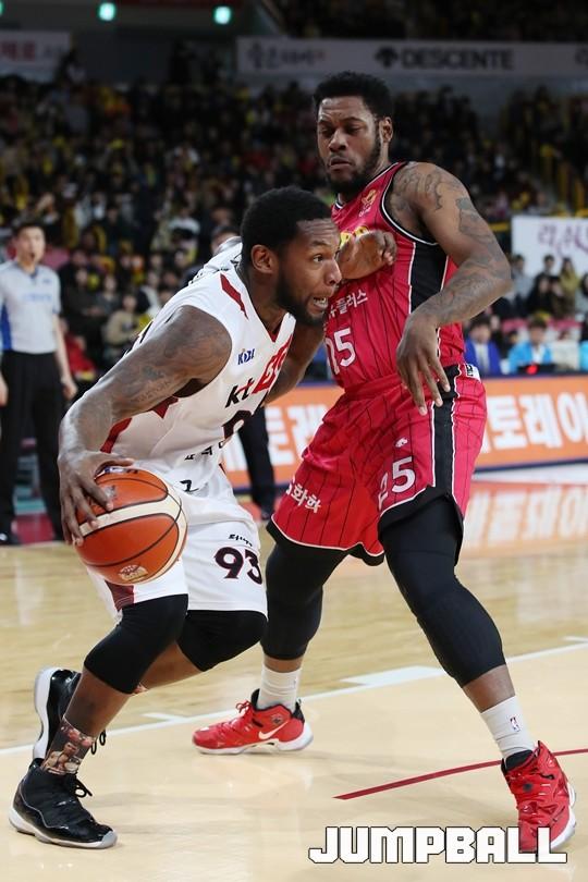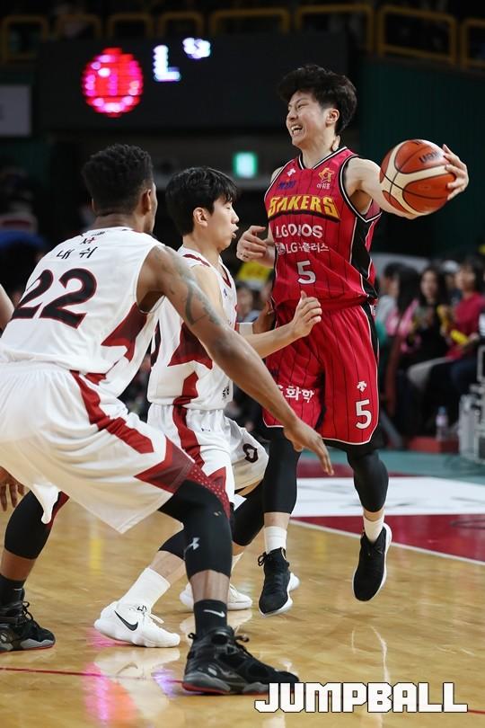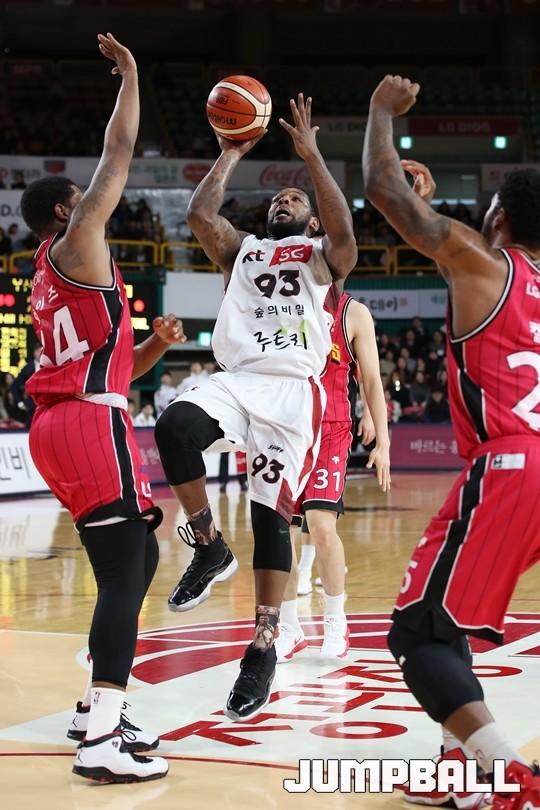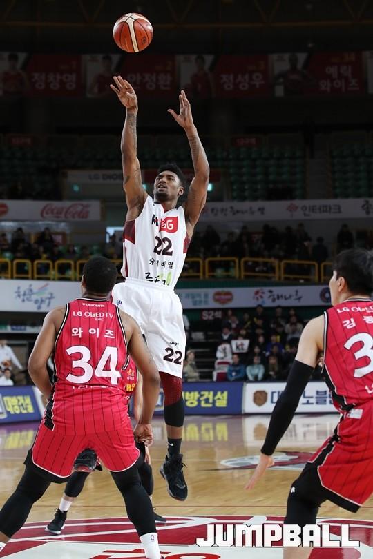 [점프볼=창원/김병문 기자] 6일 창원실내체육관에서 열린 정관장프로농구 KBL2017-2018 시즌 창원 LG와 부산 KT의 경기에서 LG가 KT를 82:70으로 승리했다.