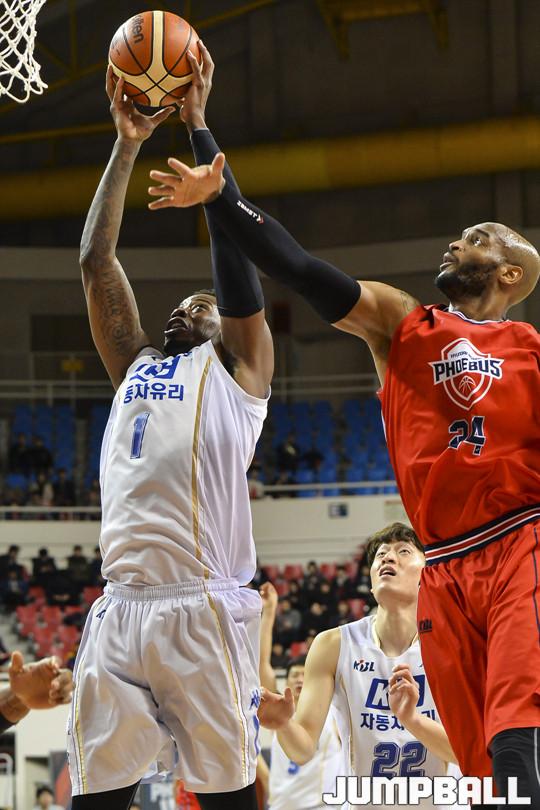 [점프볼=울산/홍기웅 기자] 9일 울산동천체육관에서 열린 '2017-2018 정관장 프로농구' 울산 현대모비스와 전주 KCC의 경기에서 전주 KCC가 하승진과 찰스 로드의 높이와 득점을 앞세워 71-60으로 승리를 거둬 2위를 수성했다. 울산 현대모비스와 전주 KCC의 경기 화보.