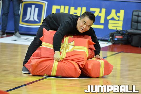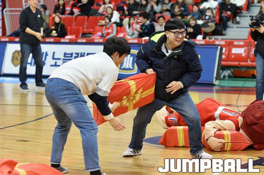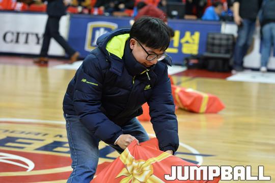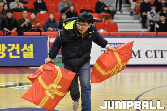 [점프볼=울산/홍기웅 기자] 9일 울산동천체육관에서 열린 '2017-2018 정관장 프로농구' 울산 현대모비스와 전주 KCC의 경기에서 울산 현대모비스는 신년을 맞이해 의좋은 형제 이벤트를 하프타임 이벤트에 포함시켜 이벤트를 진행했다. 울산 현대모비스 이벤트 포토 화보