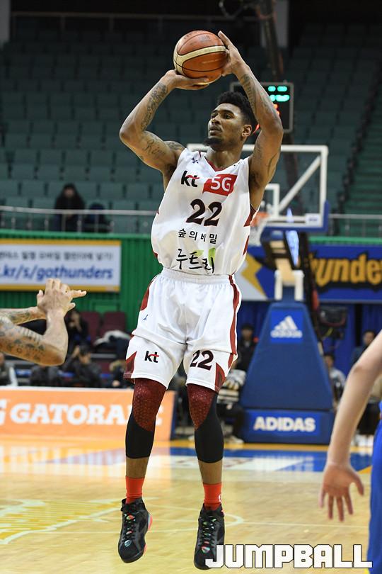 10일 잠실실내체육관에서 열린 '17-18 정관장 프로농구 서울 삼성 과 부산 KT 의 경기에서 르브라이언 내쉬가 점프슛을 시도하고 있다.