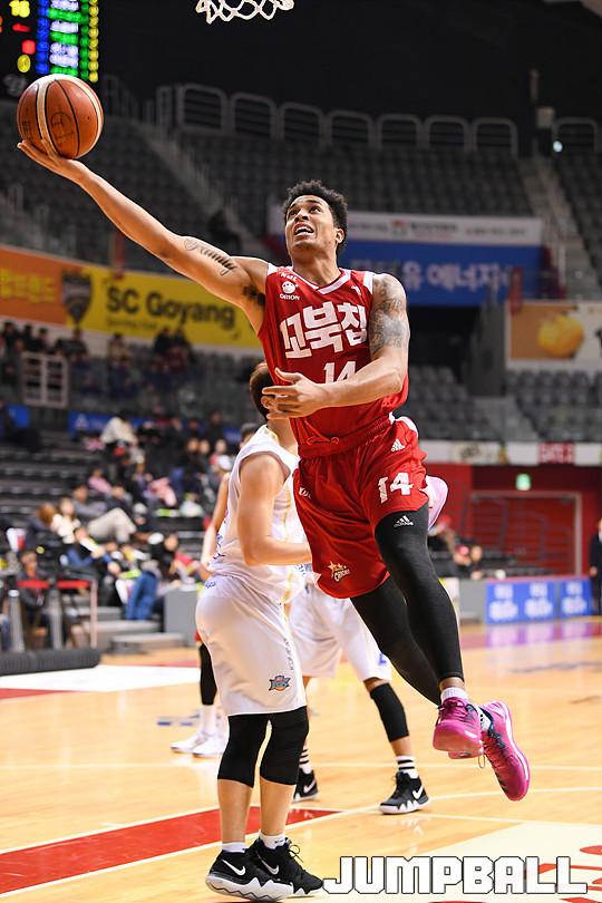 [점프볼=고양/유용우 기자] 11일 고양 실내체육관에서 열린 '2017-2018 정관장 프로농구' 고양 오리온과 전주 KCC의 경기, 오리온 에드워즈가 레이업을 올리고 있다.