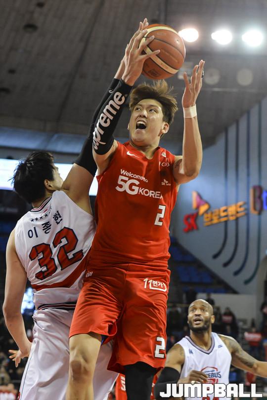 [점프볼=잠실/홍기웅 기자] 11일 잠실학생체육관에서 열린 '2017-2018 정관장 프로농구' 서울 SK와 울산 현대모비스의 경기에서 98-92로 승리를 거뒀다. 이번 승리로 SK와의 승차는 1경기로 좁혀져 기분 좋게 전반기 마무리를 했다. 서울 SK와 울산 현대모비스의 경기 화보.